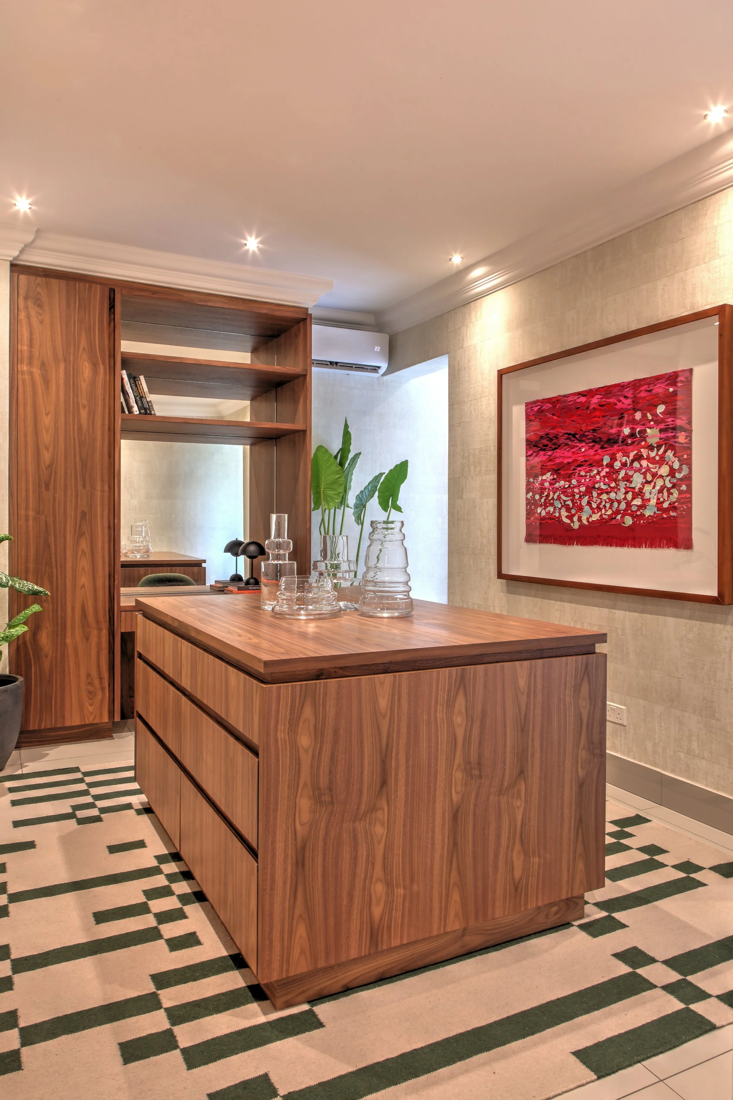 This extraordinary project presented a blank canvas, brimming with creative possibilities. The design draws inspiration from the breathtaking sloping landscapes of majestic mountains and lush greenery that embrace it. With meticulous attention to detail, we shaped a space that harmonises with its natural surroundings, incorporating tones and textures that echo its environment. A sophisticated, modern sanctuary that celebrates its African roots.